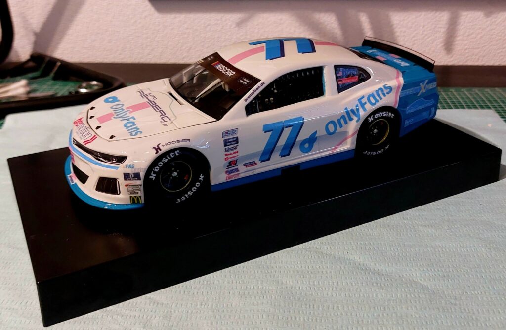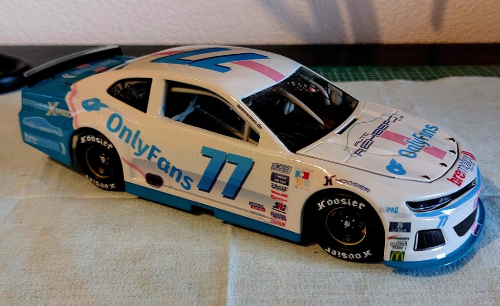 In the Euronascar OPEN category, the charming model Vanessa Neumann , better known as „Happinessa,“ sponsored by OnlyFans, took the wheel of the Camaro. At this year’s Euronascar race at Motopark Oschersleben, I was able to present the model to them both. Of course, they both signed it as well. A heartfelt thank you for that.